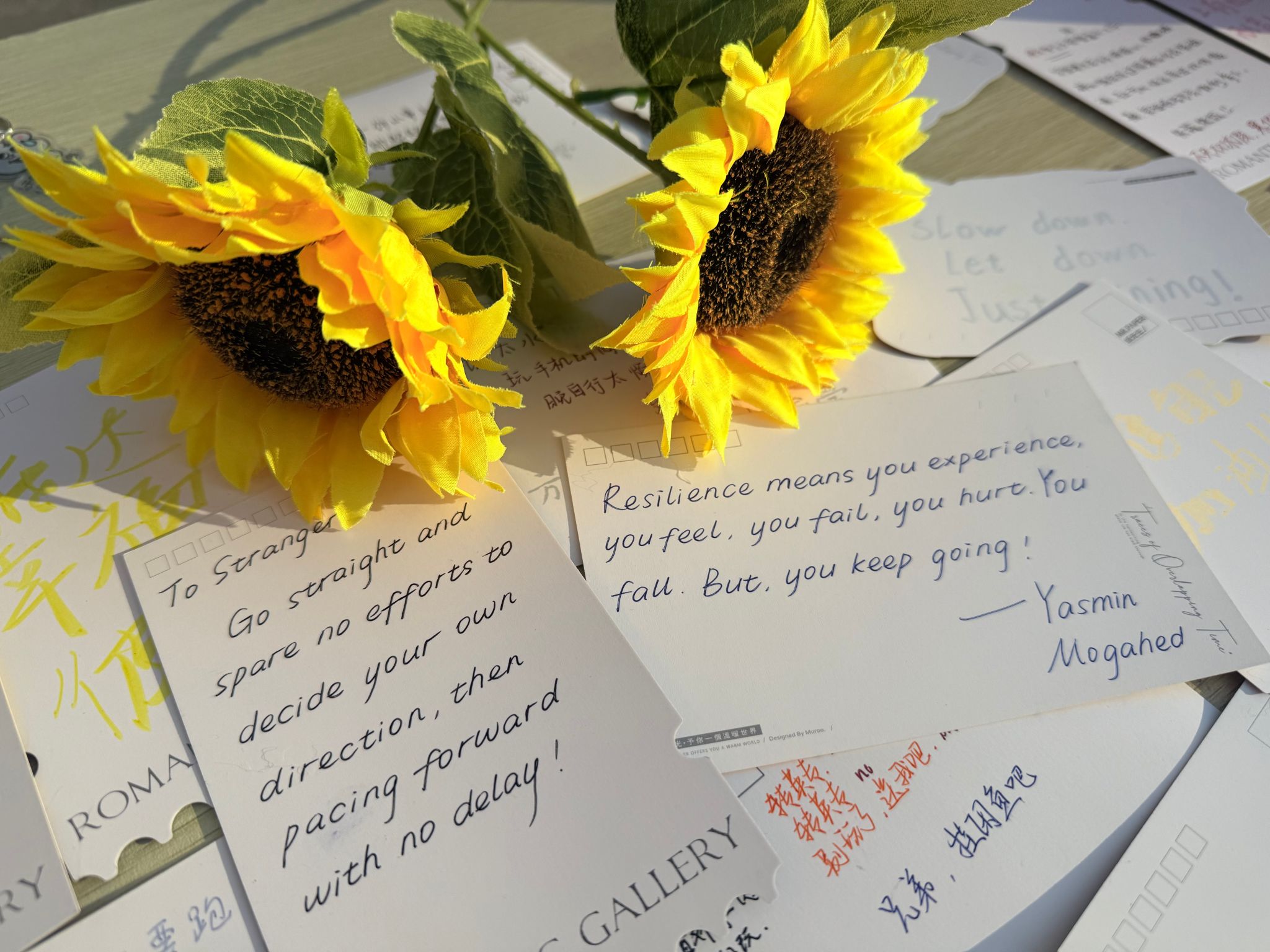 活动现场布置简洁温馨,长桌上摆放着向日葵与多种彩色卡纸。参与者可自取明信片,写下自己的心情或祝福语投入信箱,并随机抽取他人留言。在短短半小时内,信箱中已积累数十张真挚留言,“今天风很温柔”“别怕,明天会亮”等句子成为现场高频互动内容。娱乐城 学生会志愿者还在现场提供热茶与主题书签,进一步营造出温暖而宁静的交流氛围。