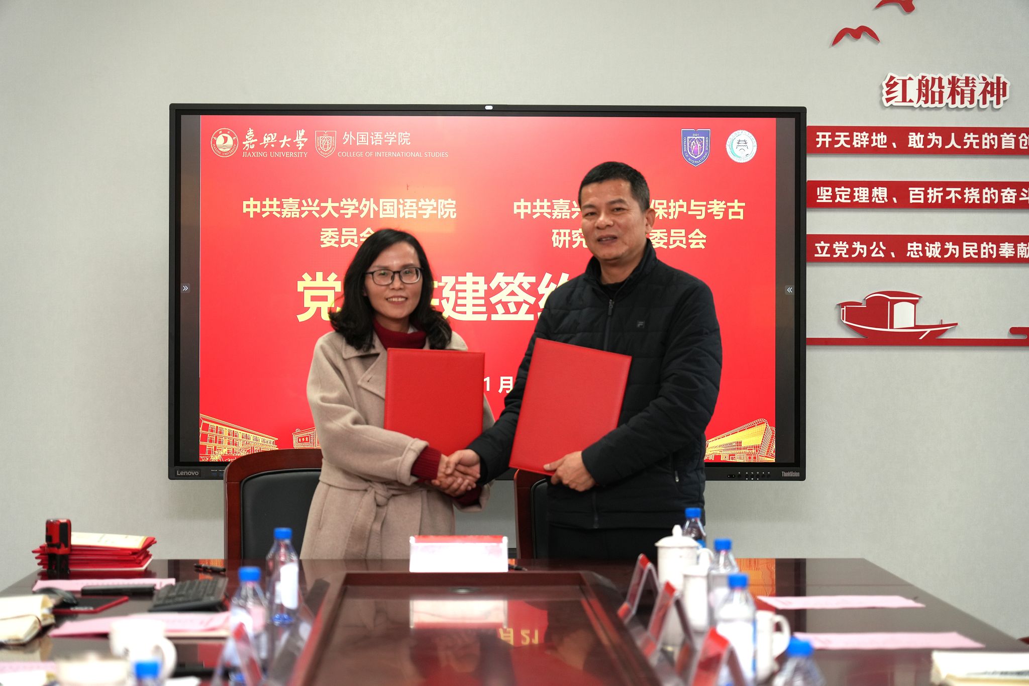 1月21日下午,娱乐城 党委与嘉兴市文物保护与考古研究所党支部在兴德楼南楼516会议室举行党建共建签约仪式。学院院长唐艳芳、党委书记刘巧芝,嘉兴市文物保护与考古研究所所长张青出席签约。仪式由学院党委副书记张啸峰主持,学院师生代表和相关人员参加仪式。